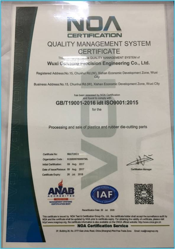 公司以ISO9001:2008《质量管理体系-要求》为标准,进行了周密的质量管理体系策划,建立了完整的质量管理体系,获得了质量管理体系认证证书。2017年07月,公司顺利完成了ISO9001:2008标准到ISO9001:2015标准的转换,并获得了质量管理体系认证证书。